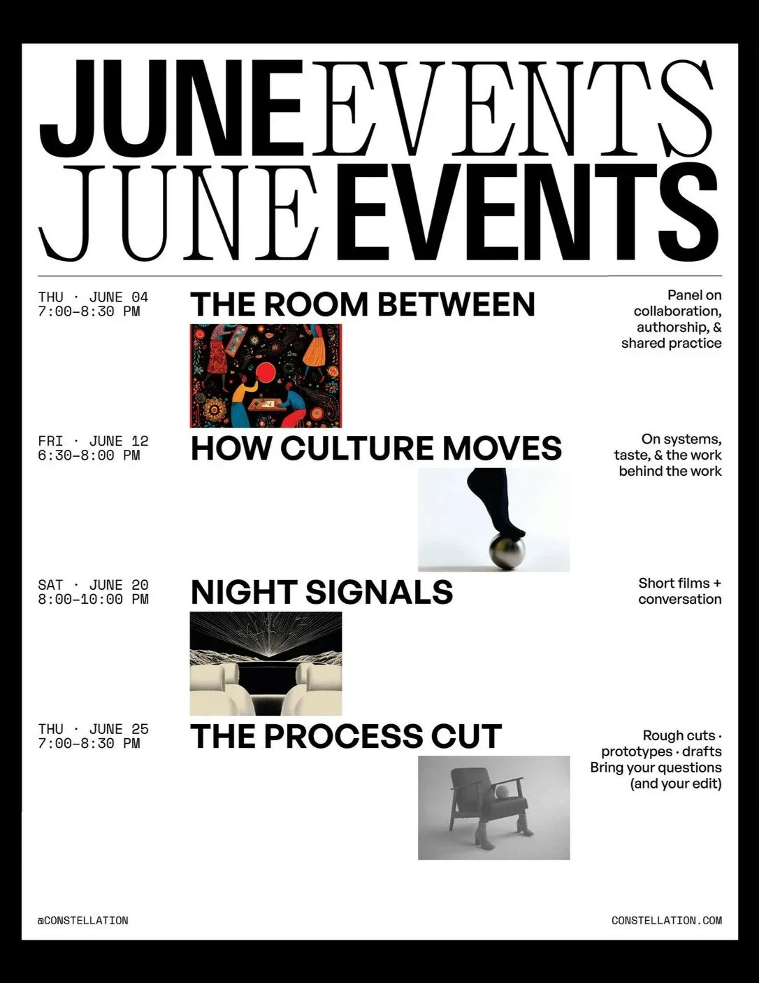 Constellation is a member-driven space for co-working, play, and culture-making. A family-style constellation of divergent, cross-disciplinary thinkers and doers—each with their own practice, open to exchanging ideas, sharing moments, and making culture together.